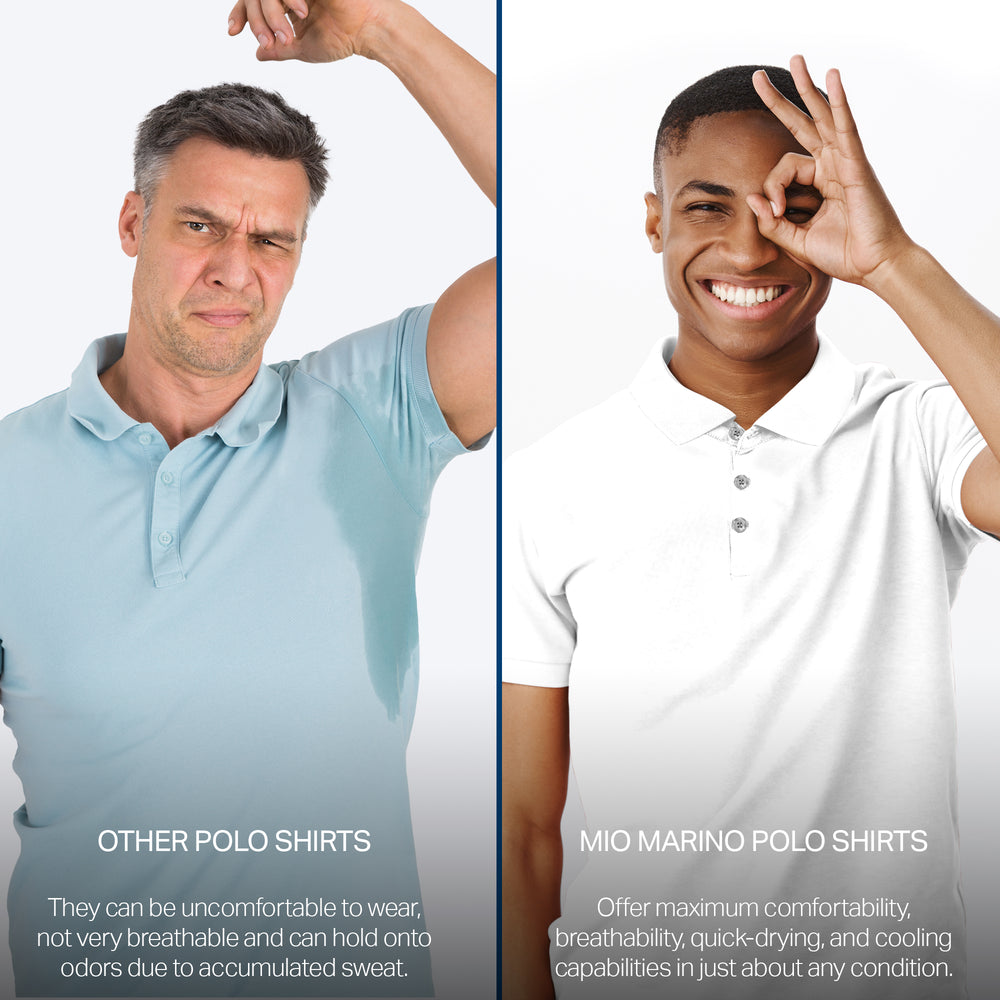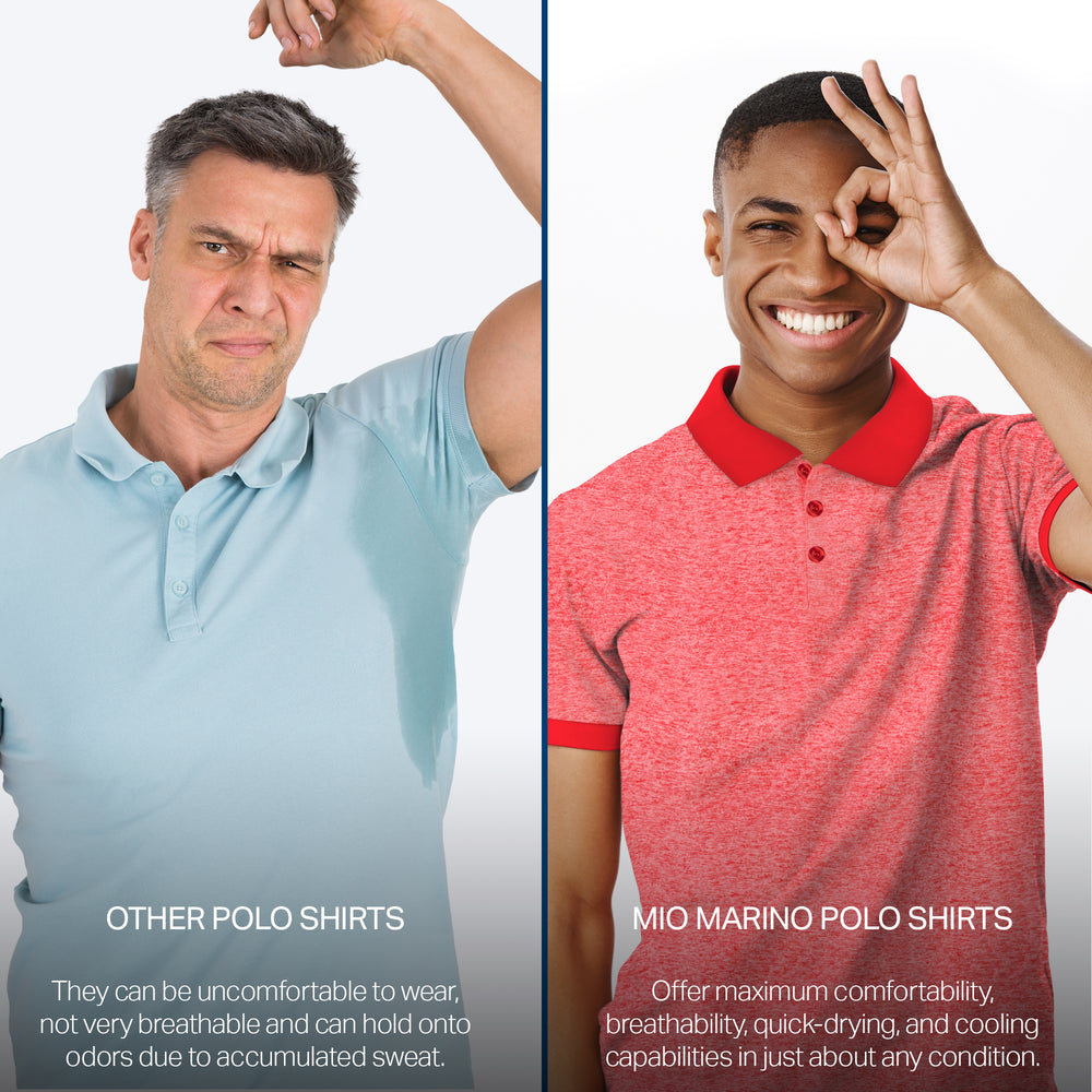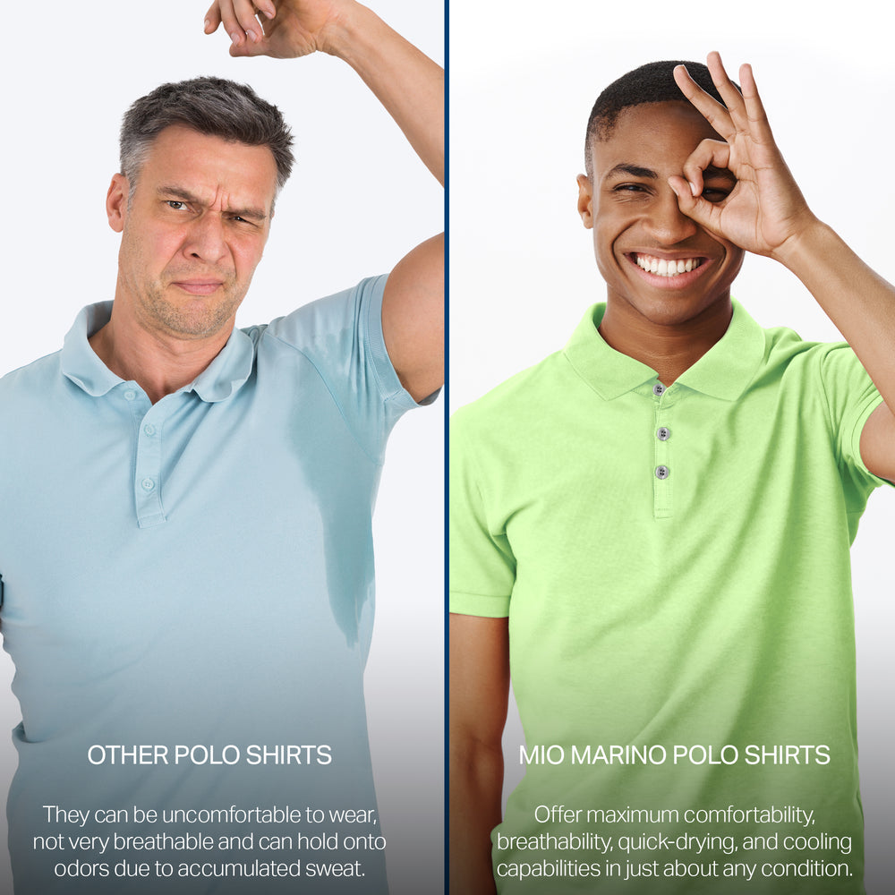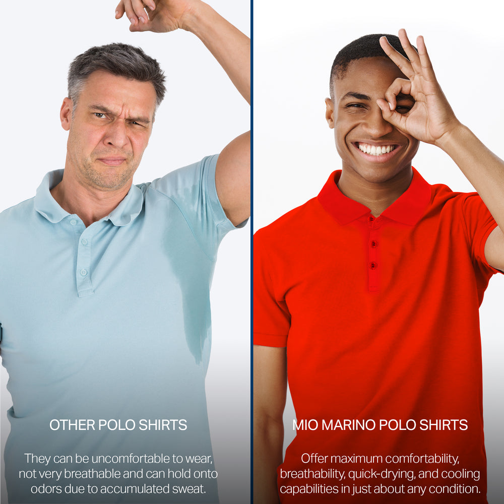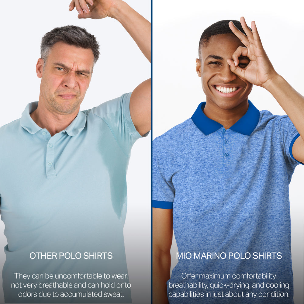 - DRY-FIT COMFORT - Using a lightweight & breathable 95% polyester/5% spandex blend, our selection of quick-dry polo shirts for men were developed to pull heat & sweat away from your body!