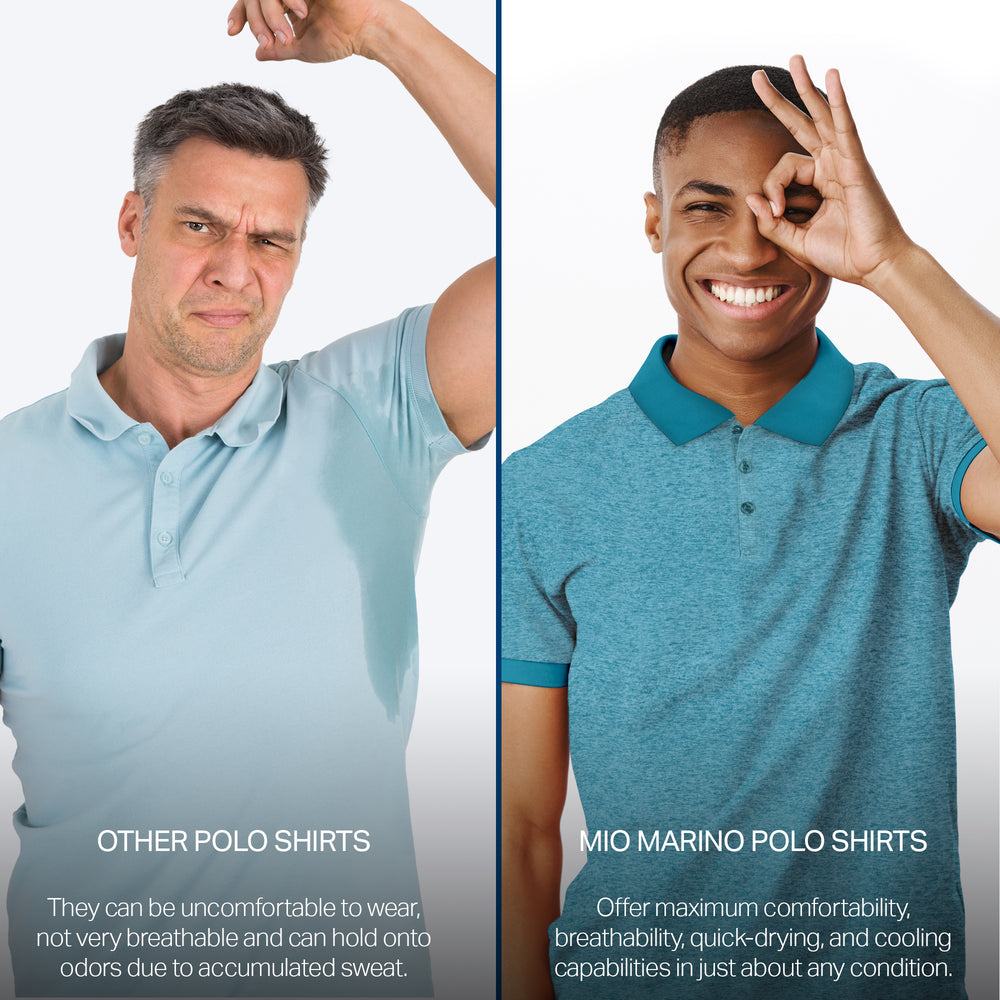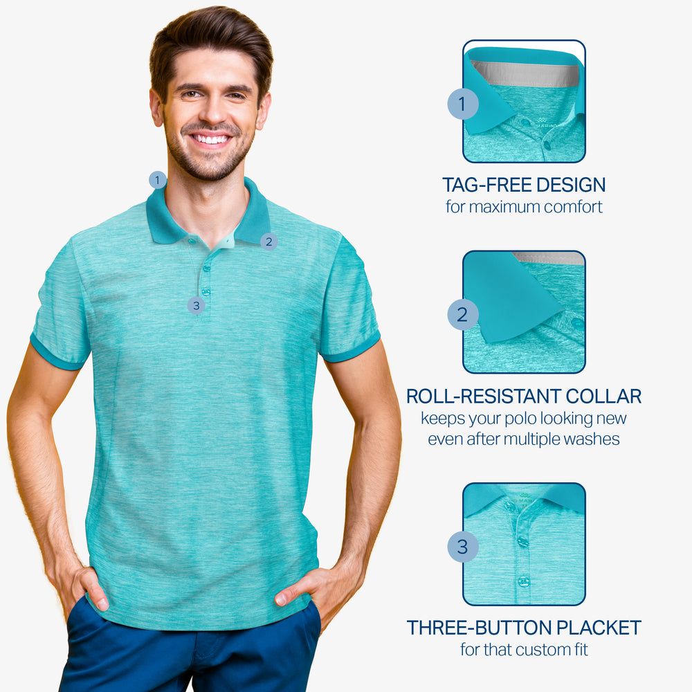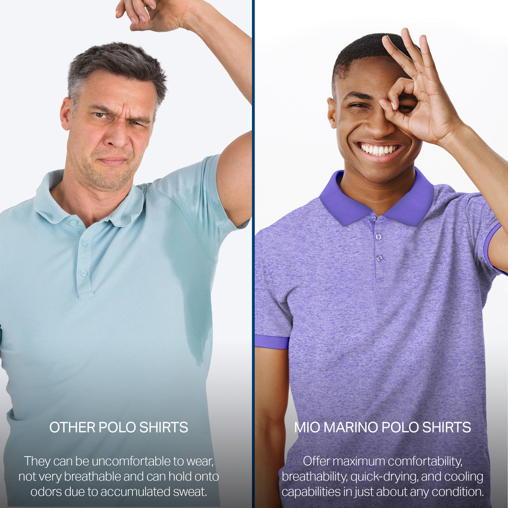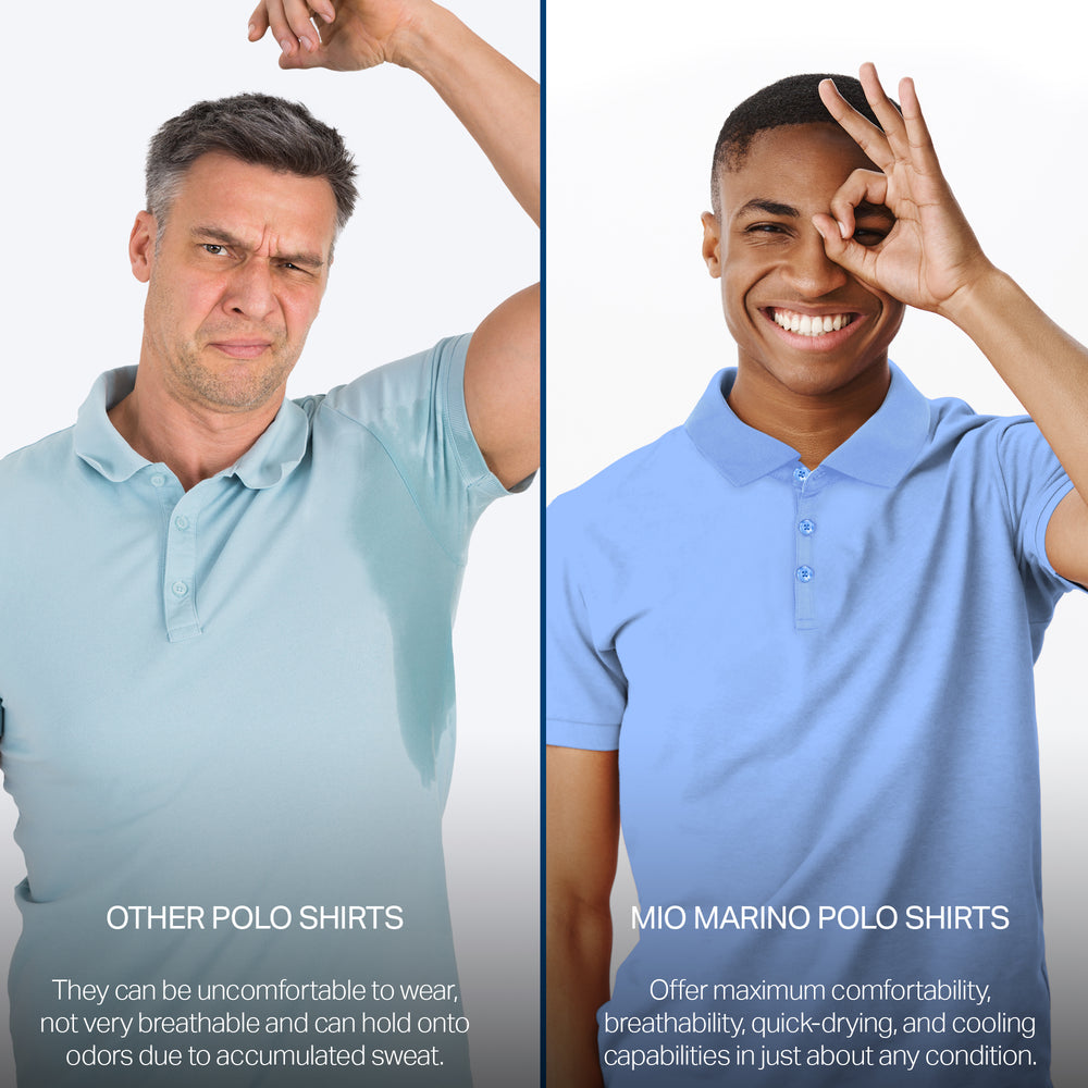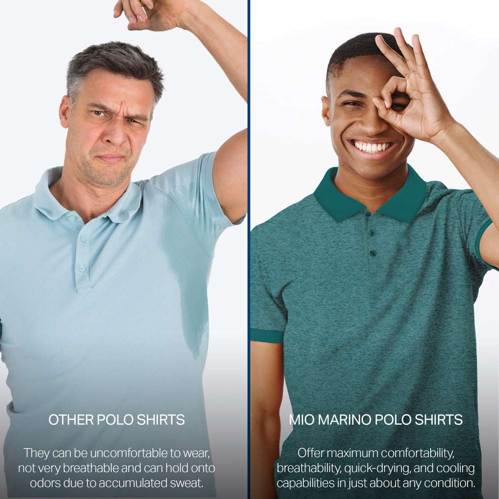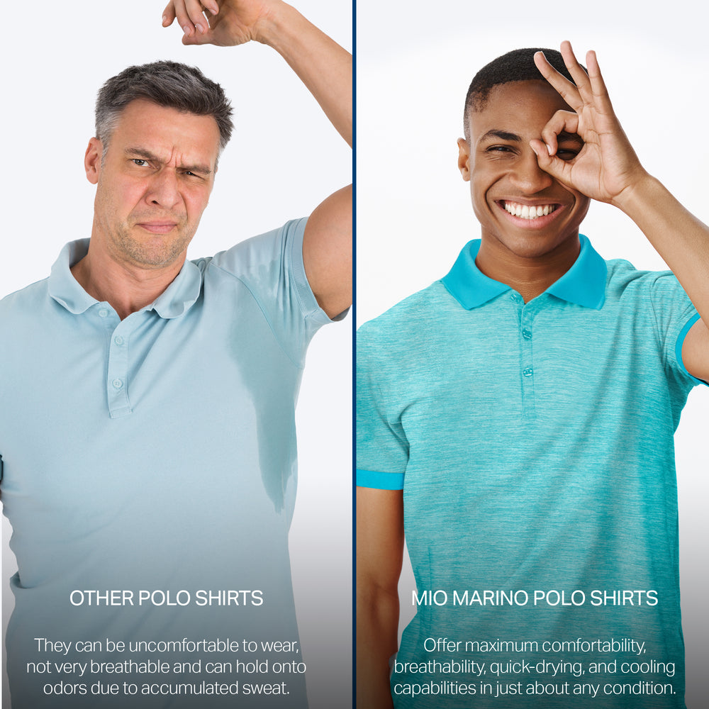 - DRY-FIT COMFORT - Using a lightweight & breathable 95% polyester/5% spandex blend, our selection of quick-dry polo shirts for men were developed to pull heat & sweat away from your body!
