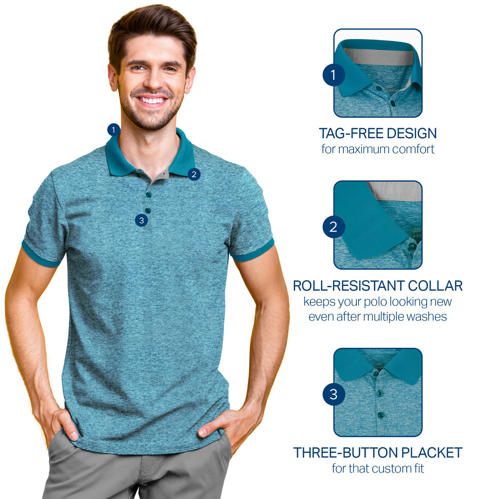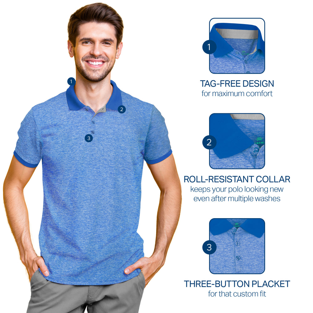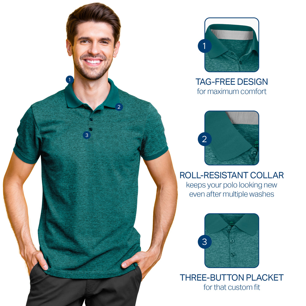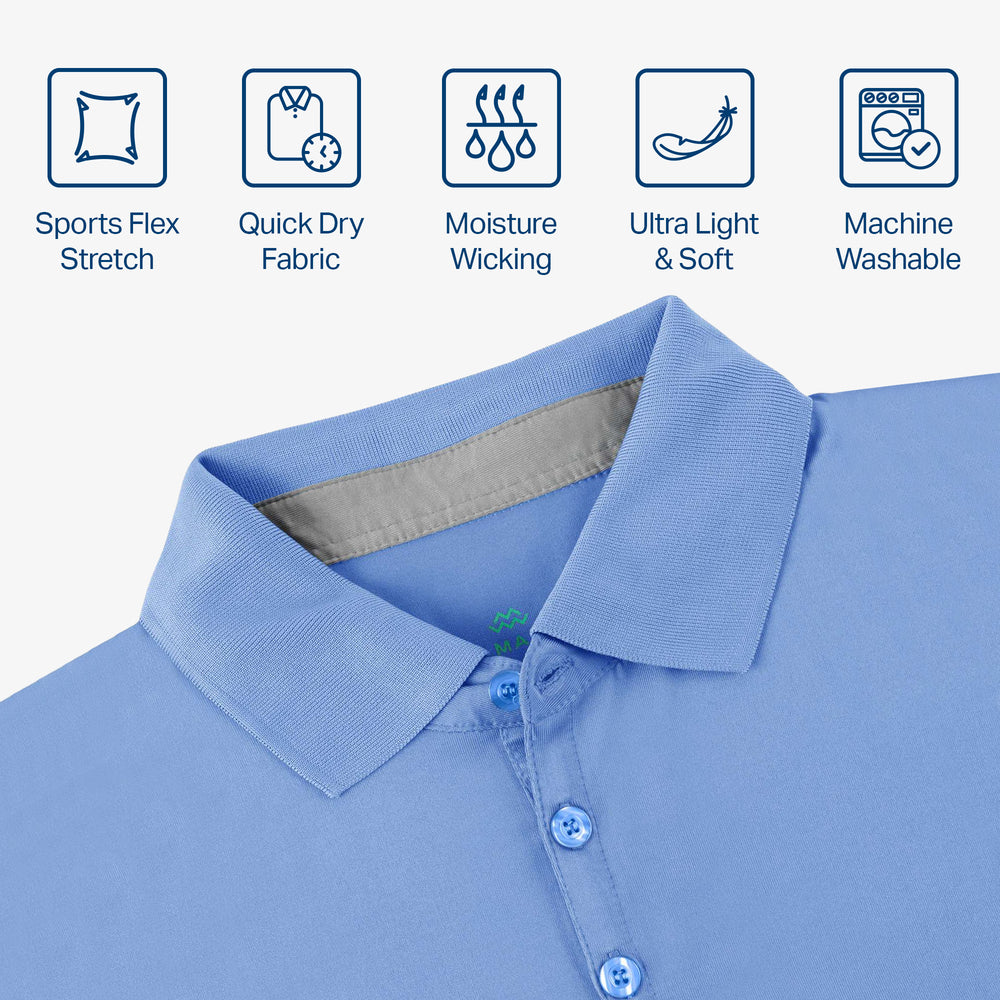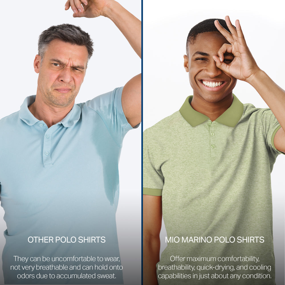 - DRY-FIT COMFORT - Using a lightweight & breathable 95% polyester/5% spandex blend, our selection of quick-dry polo shirts for men were developed to pull heat & sweat away from your body!