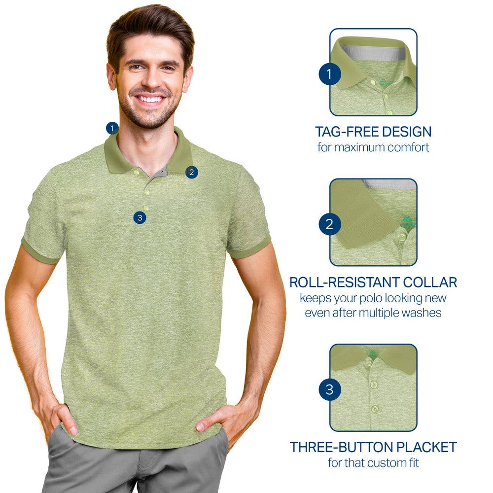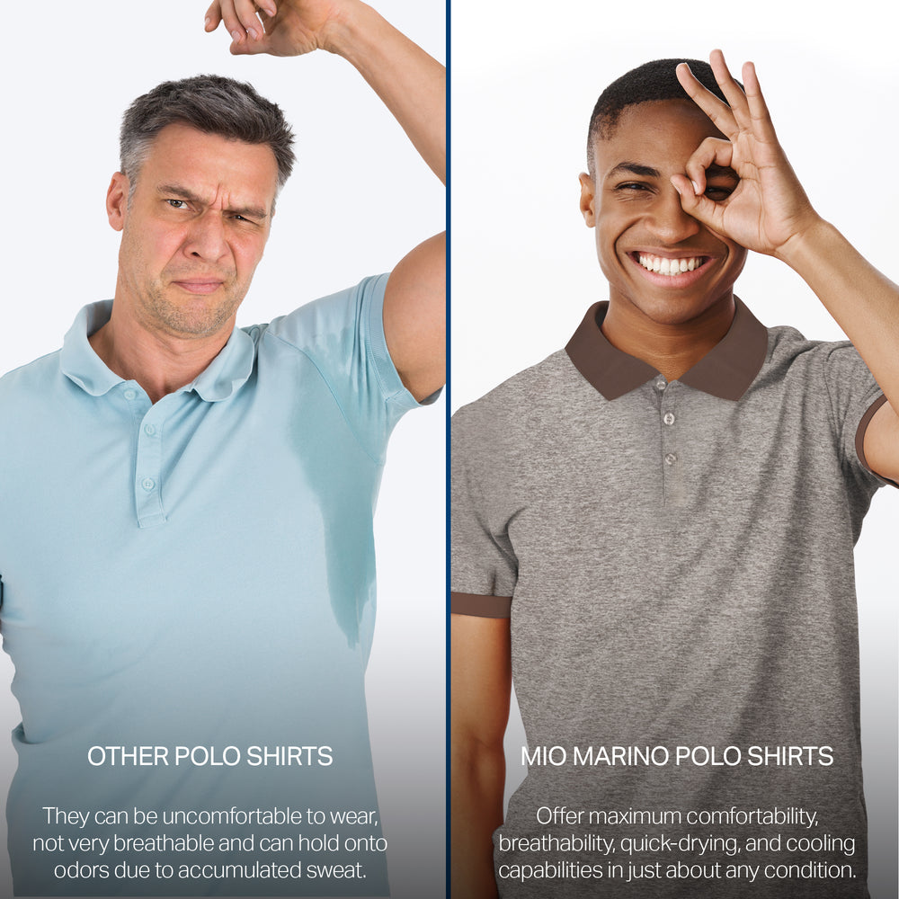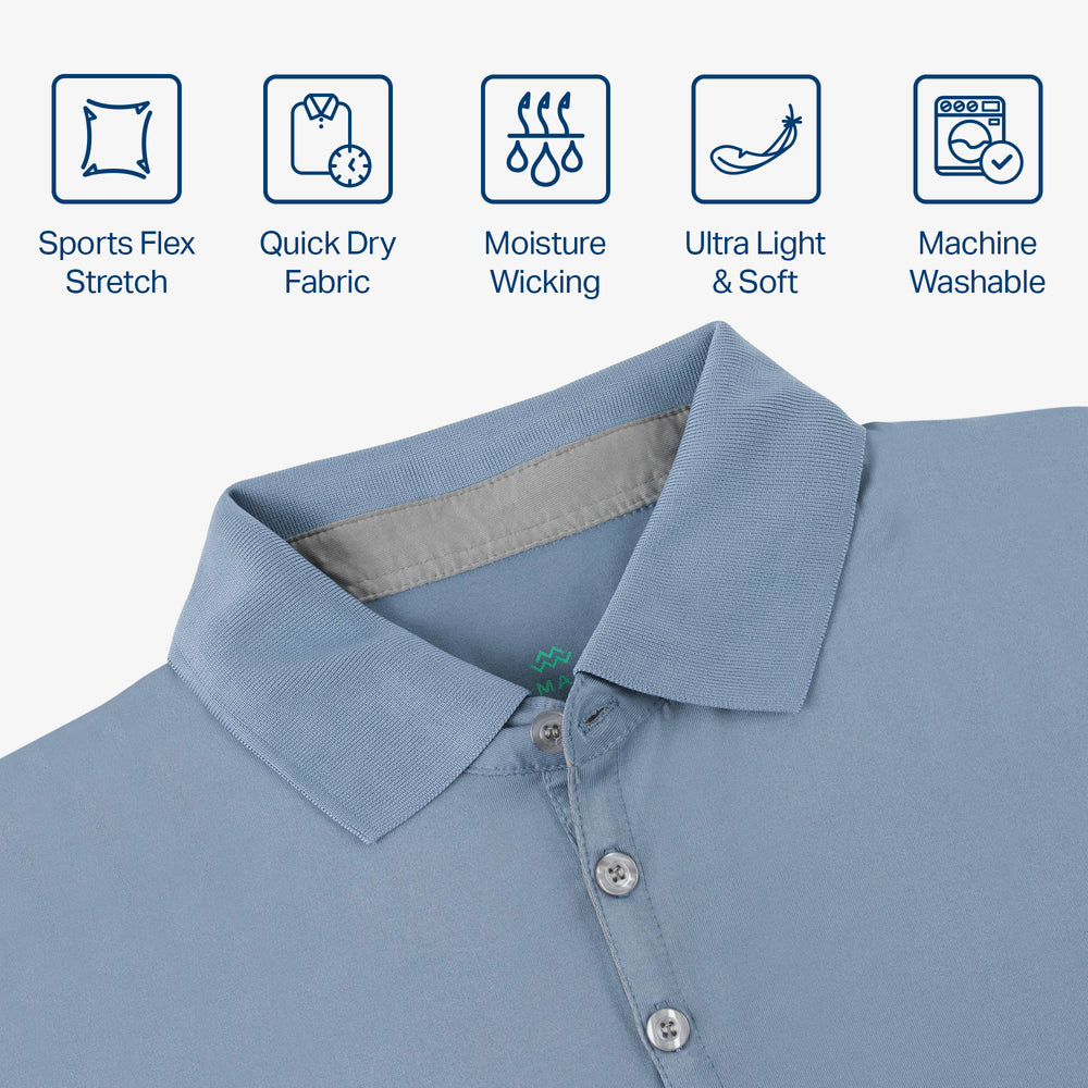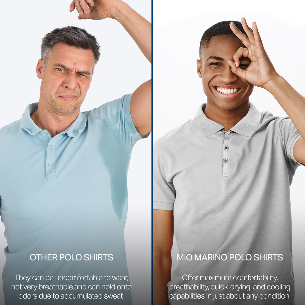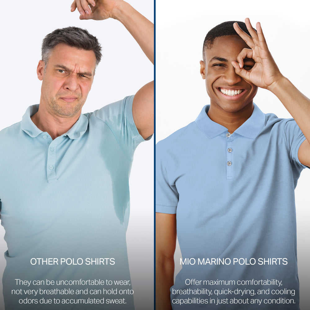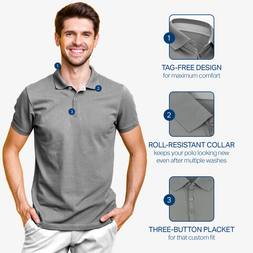 - DRY-FIT COMFORT - Using a lightweight & breathable 95% polyester/5% spandex blend, our selection of quick-dry polo shirts for men were developed to pull heat & sweat away from your body!