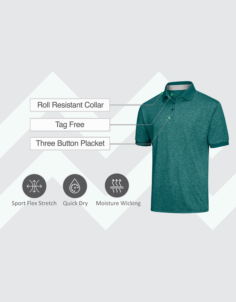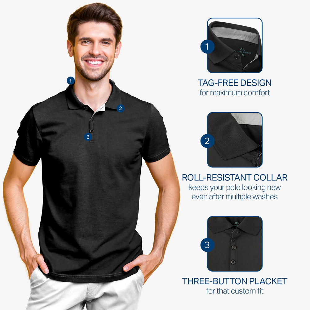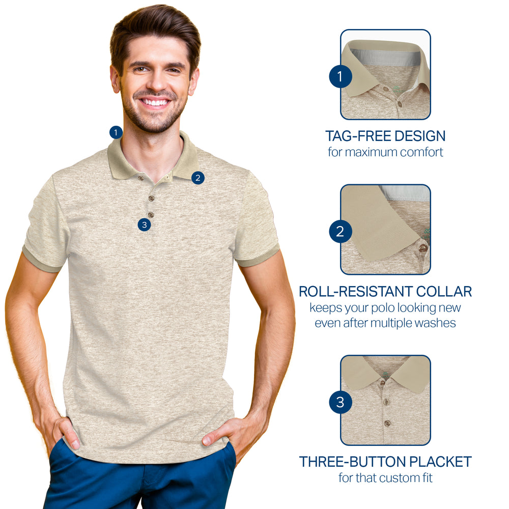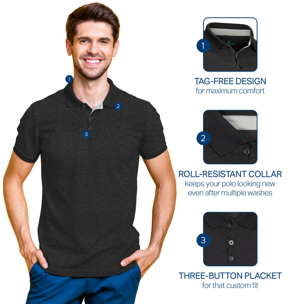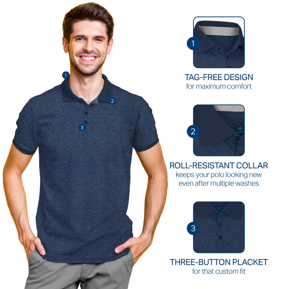 - DRY-FIT COMFORT - Using a lightweight & breathable 95% polyester/5% spandex blend, our selection of quick-dry polo shirts for men were developed to pull heat & sweat away from your body!