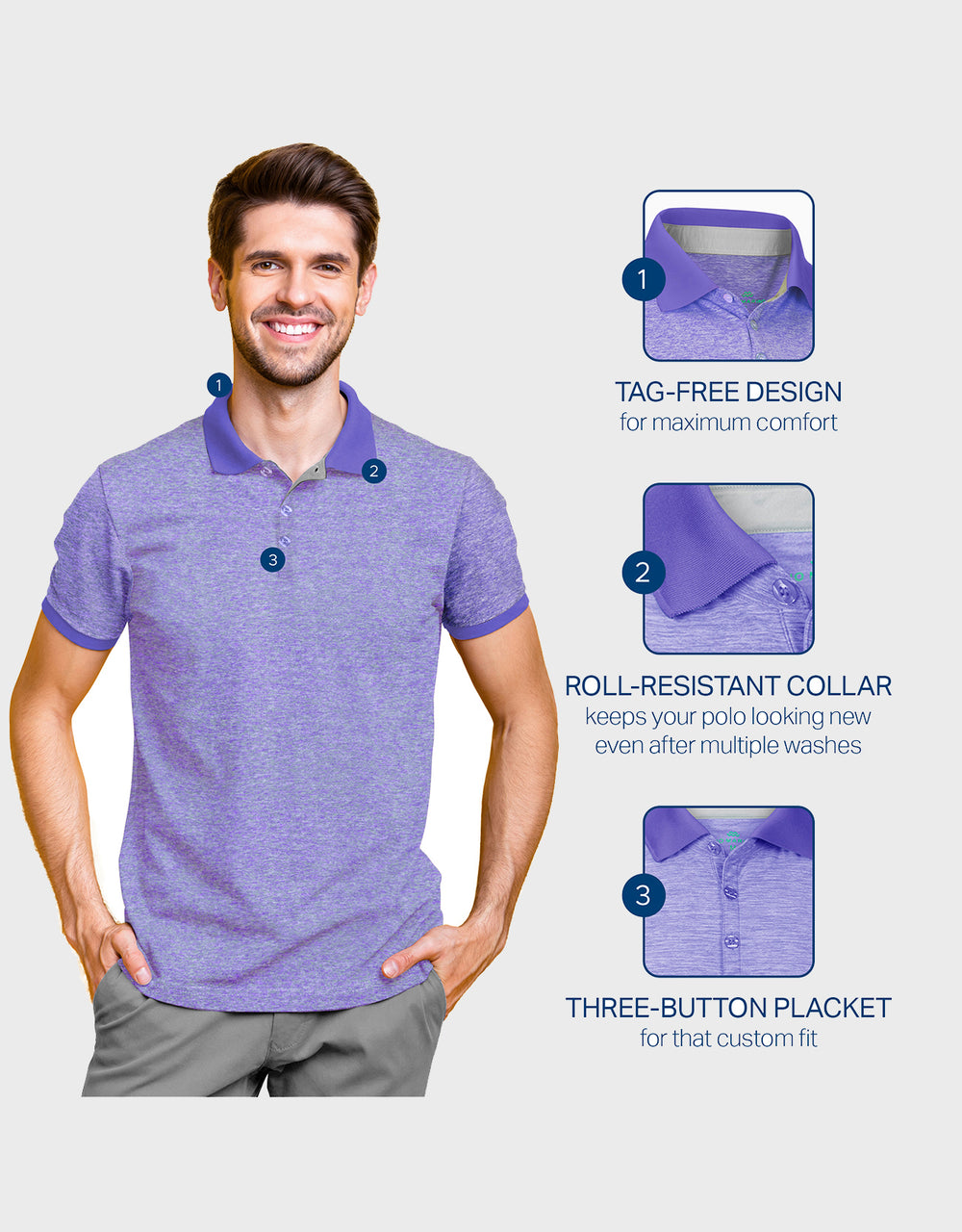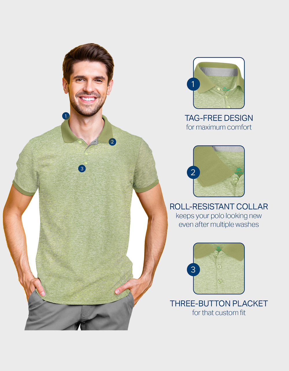 - UN-FORE-GETABLE STYLE - our dapper selection of fashionable men's polo shirts are ideal for the active gentleman that's looking for an easy-to-care-for men's golf shirt that won't shrink over time!
